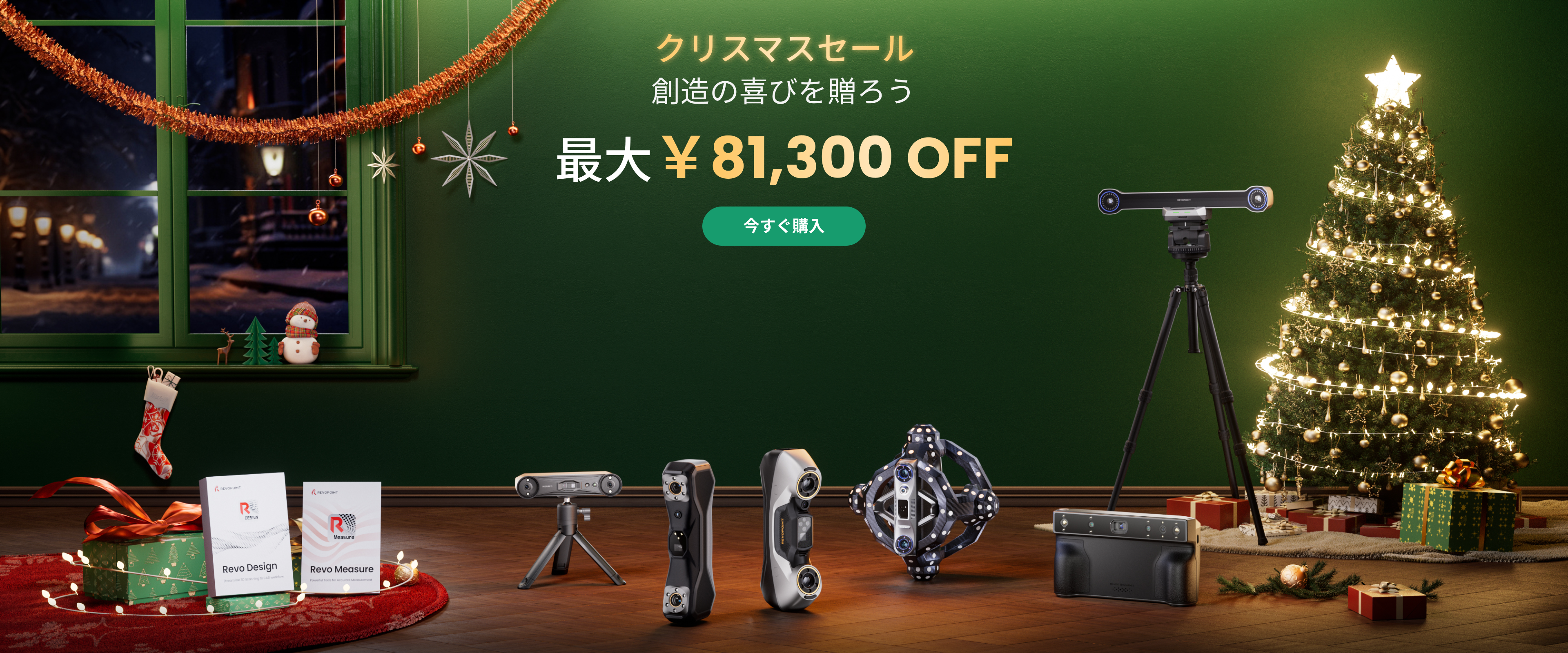 誤差を最小化し微細構造を取得する装置です。Revopoint MetroXは0.02mm精度を実現し、精密部品や複雑な小物のスキャンに最適です。