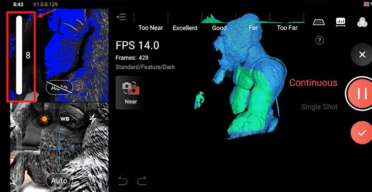 インターフェースに「Excellent」または「Good」と表示される緑色バーが、効果的な点群データ取得を示します。 -