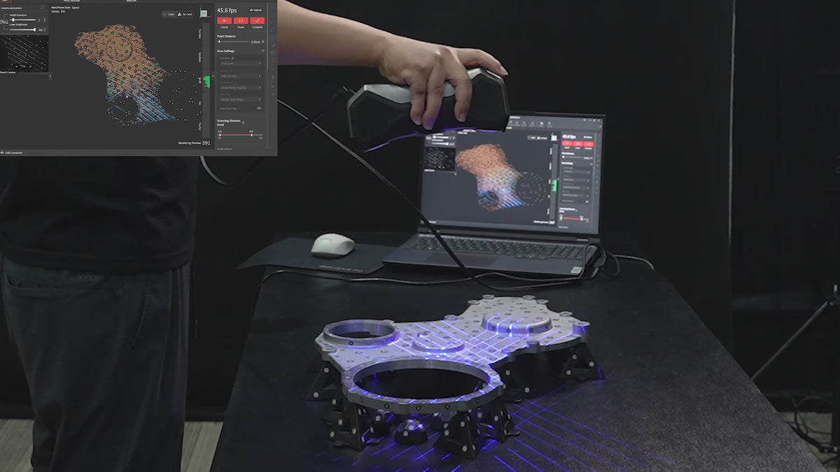 62本の強力なライトで、マーカーなしでも特徴豊富なワークをわずか数秒でスキャン。毎秒最大700万点の点群を生成し、高速かつ高精度な3Dデータを取得。