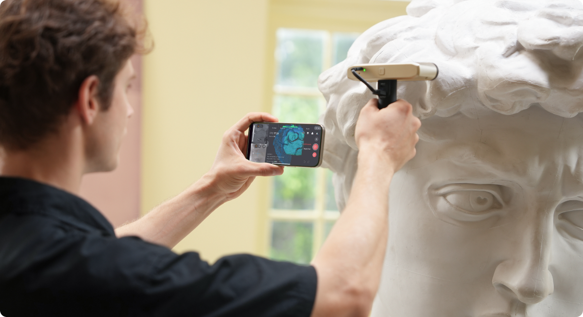 Revopoint INSPIRE 2でスキャンされた石膏製ダビデ胸像。