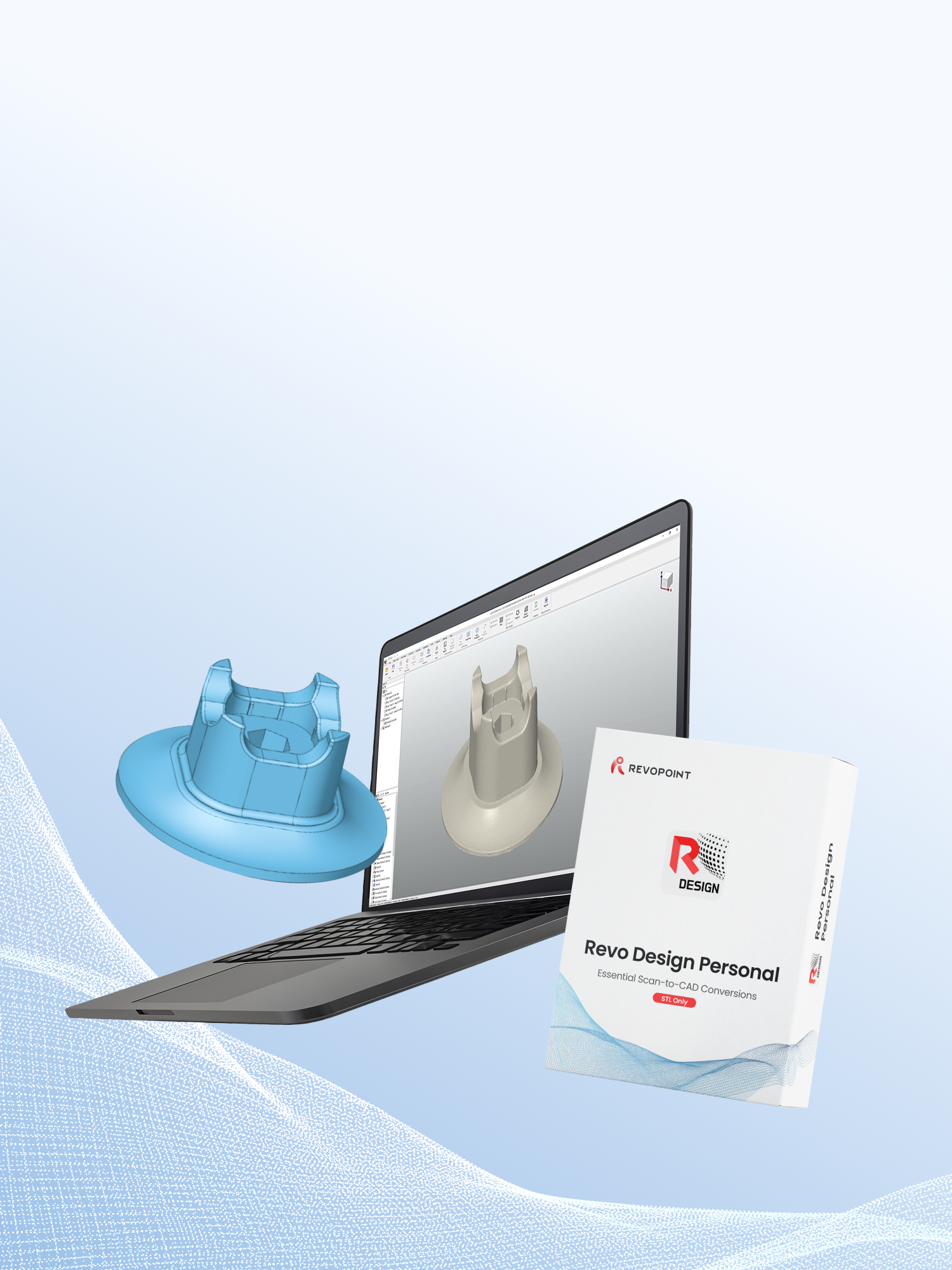 Revo Design Personalは、Revopointのスキャンソフトウェアとシームレスに連携し、メッシュデータをワンクリックで転送する、完全なスキャン-to-CADソリューションを提供します。高度なモデル・メッシュ比較機能と偏差管理を備え、リバースエンジニアリング、3Dプリンティング、工業デザインに向けた精密なCADモデルへの変換を実現します。