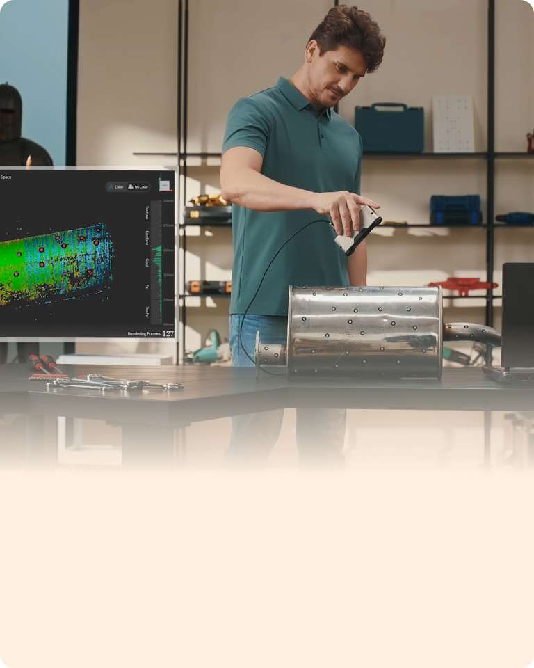 スキャンスプレー不要で、最大90 fpsの速度で、高精細な表面、暗部、光沢面のキャプチャを実現します。