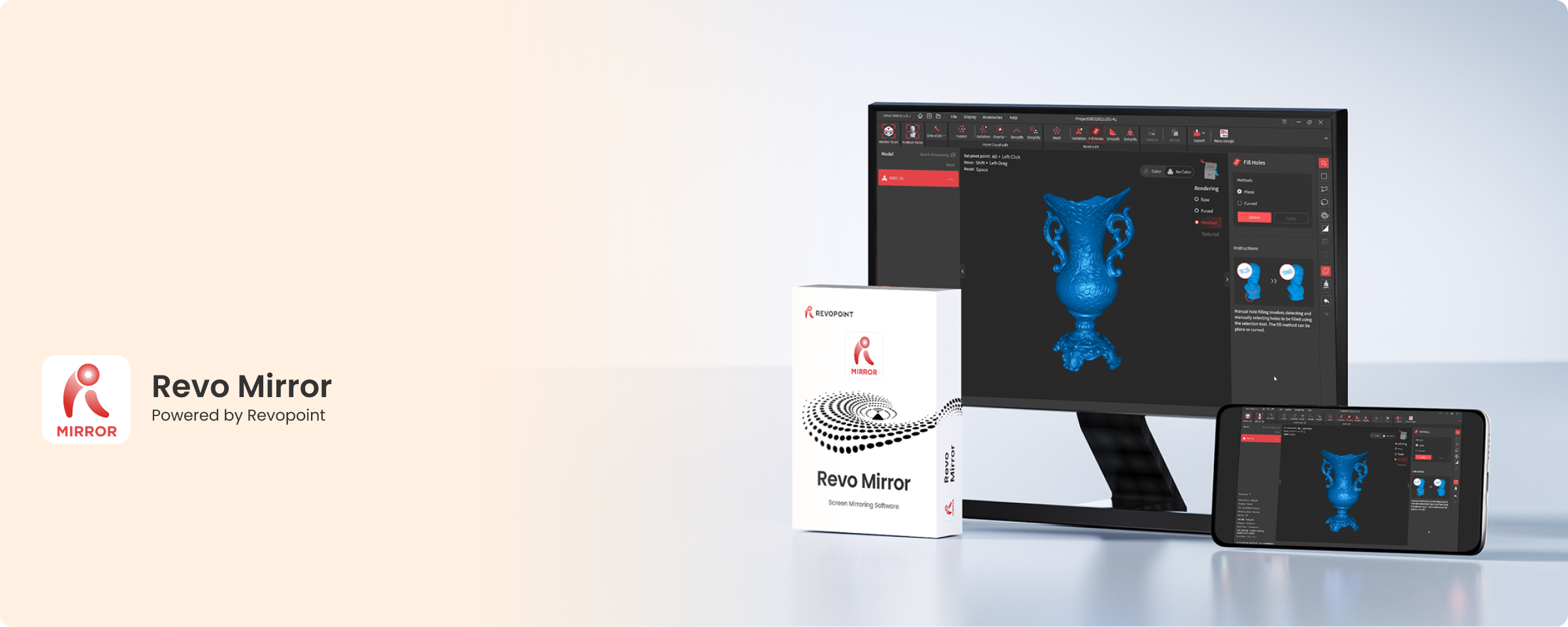 「Revo Mirror」を使用してPCのスキャンをスマートフォンに転送。デスクトップの高性能とモバイルの柔軟性を自在に組み合わせます。