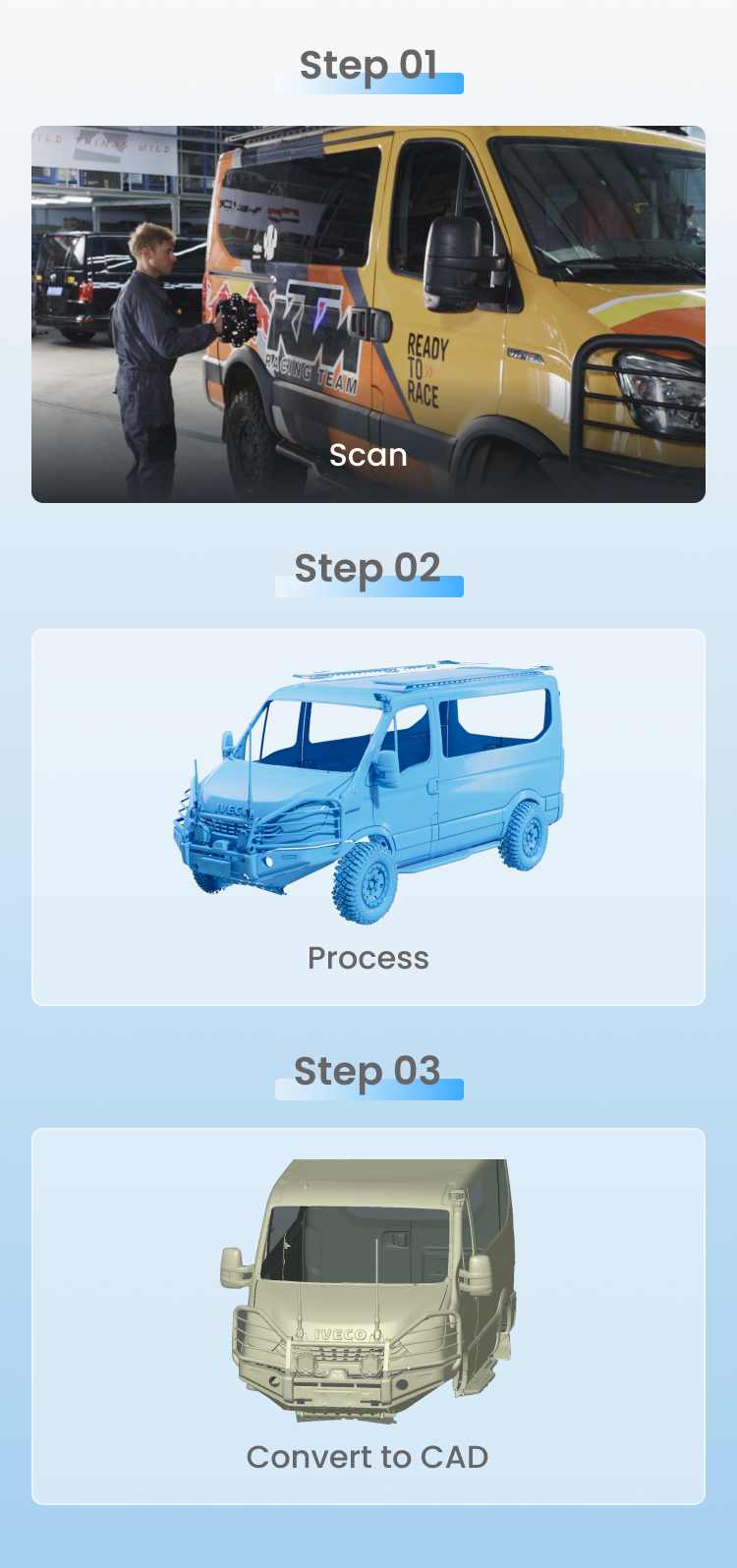 Revo ScanおよびRevo Scan 5 MetroXはRevo Designへのクイックリンク機能を備えており、オブジェクトのスキャン、点群生成、CAD編集をシームレスに行えます。
